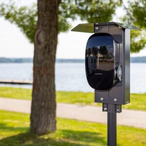 | Specifikation | Mått: 242 x 180 x 75 Vikt: 1,3 kg Antal faser: 1-fas & 3-fas Max laddningseffekt: 22kw IP-klass: IP54 Kontakt: Uttag Typ 2, Mode 3 Inbyggd energimätning: Ja RFID-läsare: Ja, som tillval Jordfelsskydd: Integrerat Jordfelsbrytare: Behöver jordfelsbrytare A Uppkoppling: WiFi och 4G |