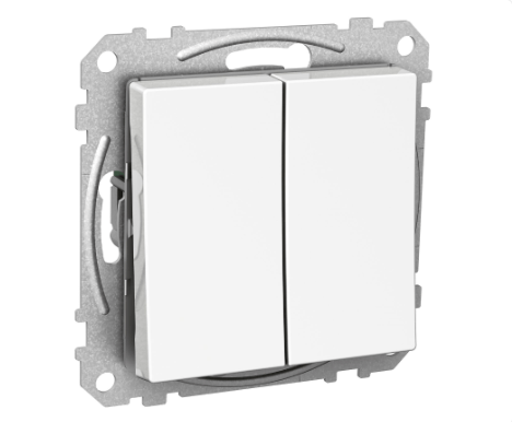 Exxact Strömställare kron med fyrkantig vippa för infällt montage i apparatdosa c/c 60mm eller för utanpåliggande montage i låg dosa 21mm. Kompletteras med valfri Exxact-ram. Snabbanslutning Vit