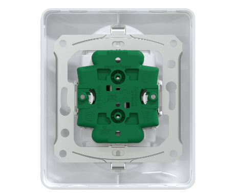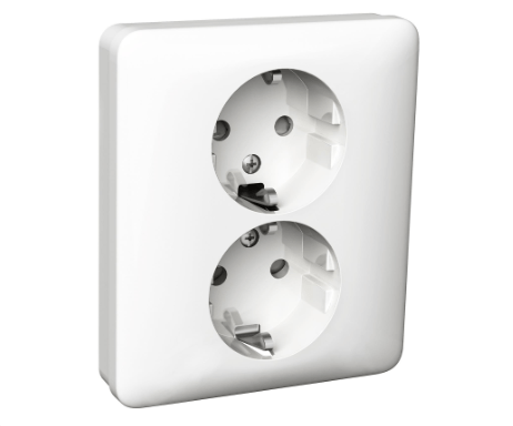Exxact 2-vägsuttag, Primo jordat, snabbanslutning, petskyddat för infälld montering i apparatdosa c/c 60mm. För utanpåliggande montage används dosa 22mm. Med två neutrala överkopplingsklämmor. Vit