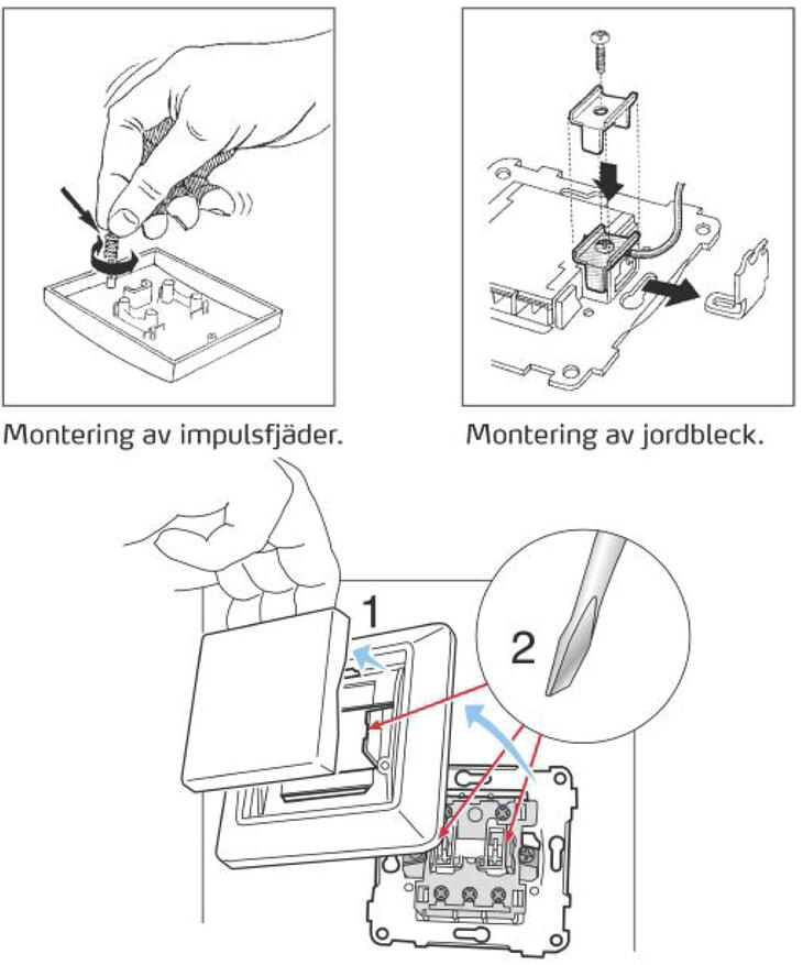 Impulsfjäder för infällda och utanpåliggande strömställare.