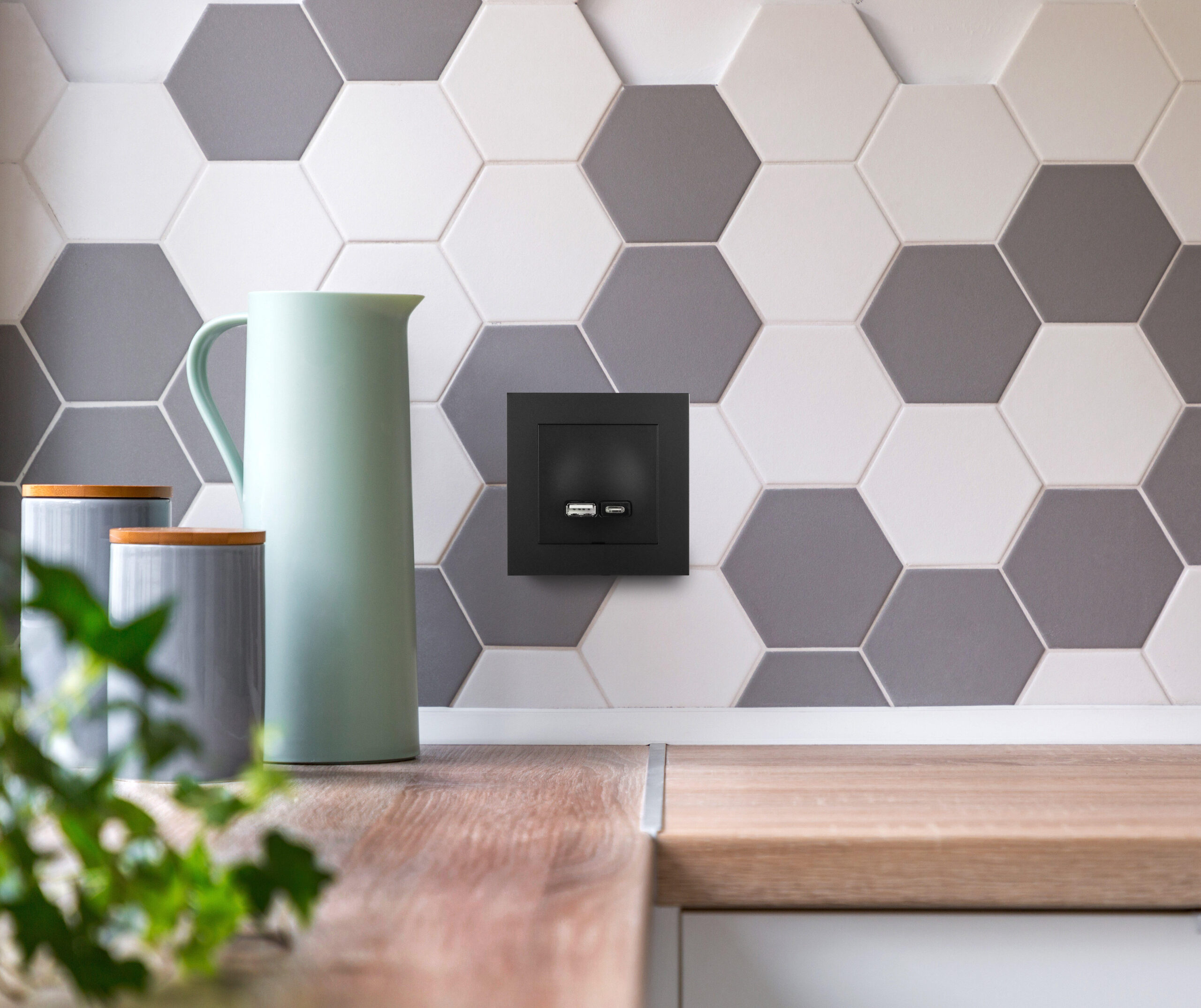 USB typ A och typ C med ny högeffektiv insats på 45W som möjliggör förbättrad laddning av både mobila enheter och bärbara datorer.